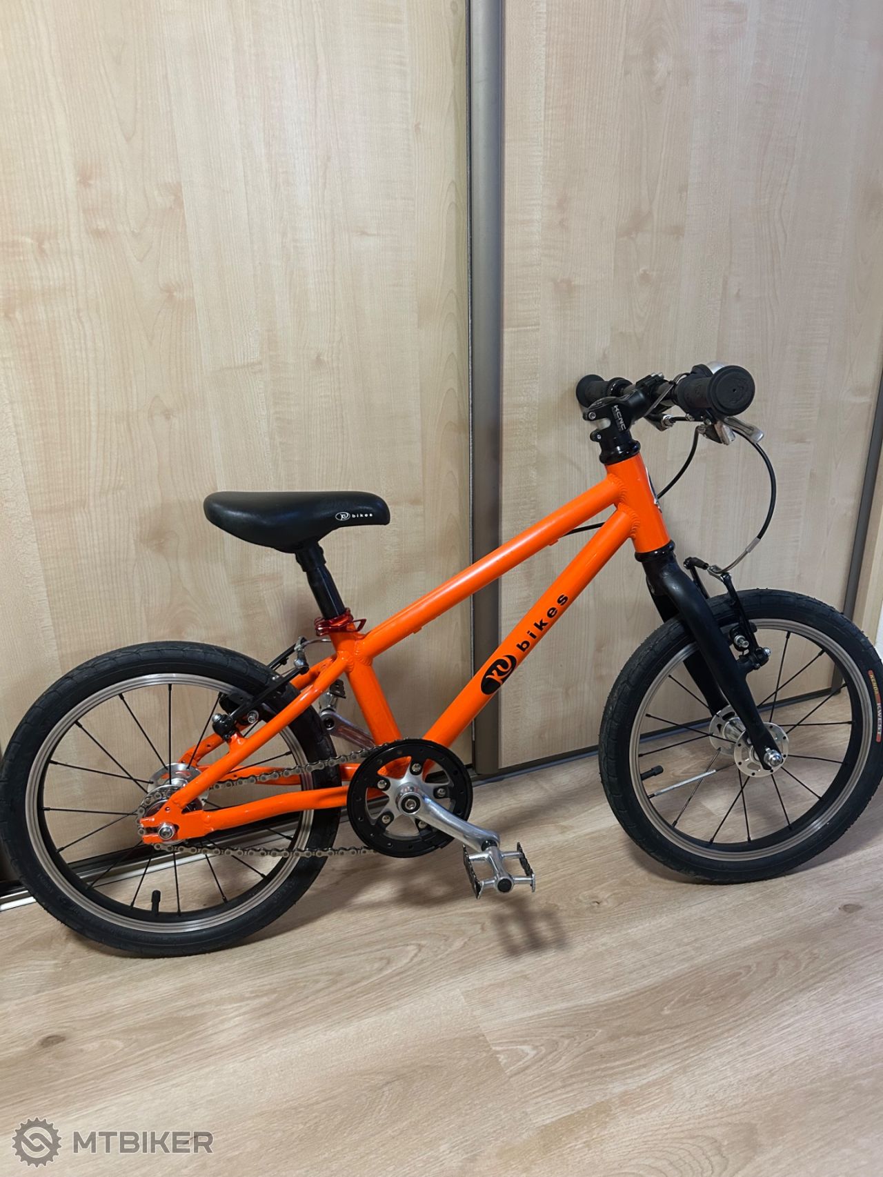 Kubikes 16 ultraľahký ľahko ovládateľný bicykel. Pripravený na jazdu. Prasklina na plastovom kryte prevodníka.