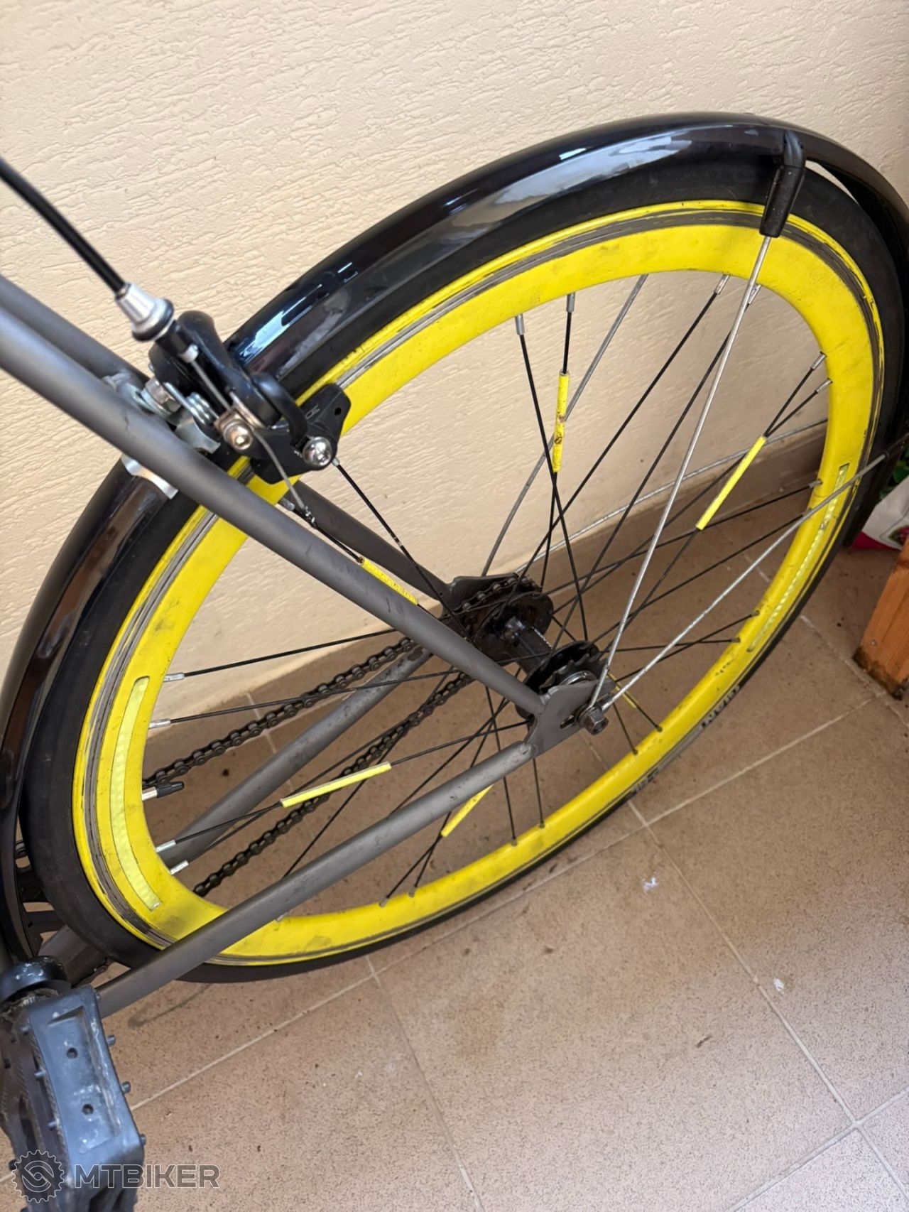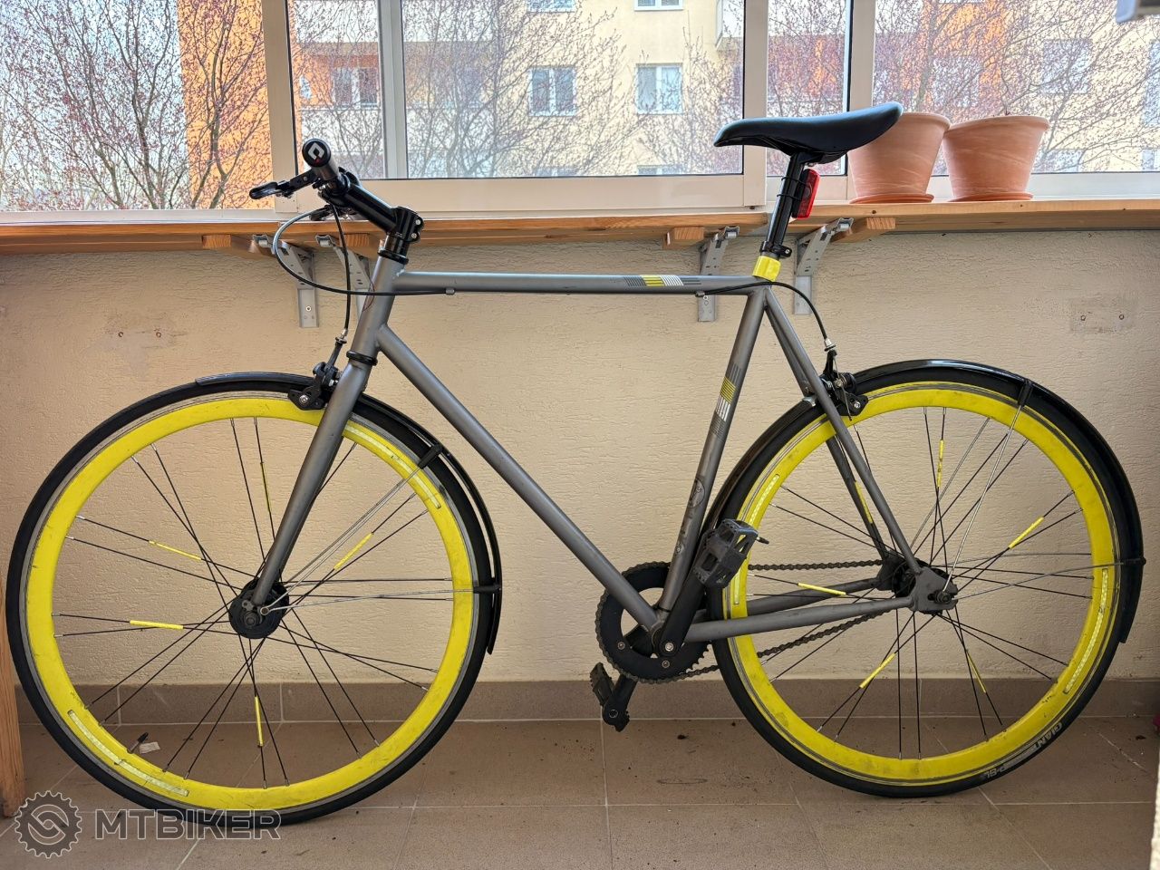 Predám mestský bicykel singlespeed (zadné kolo sa dá otočiť na pevne ozubenie alebo na voľnobežku. Rám oceľ ,náboje Quando ,plášte 700x 25C, ráfikov brzdy gumičky ako nove, blatníky. Veľkosť je také M - sedí na postavu od 170-185cm.