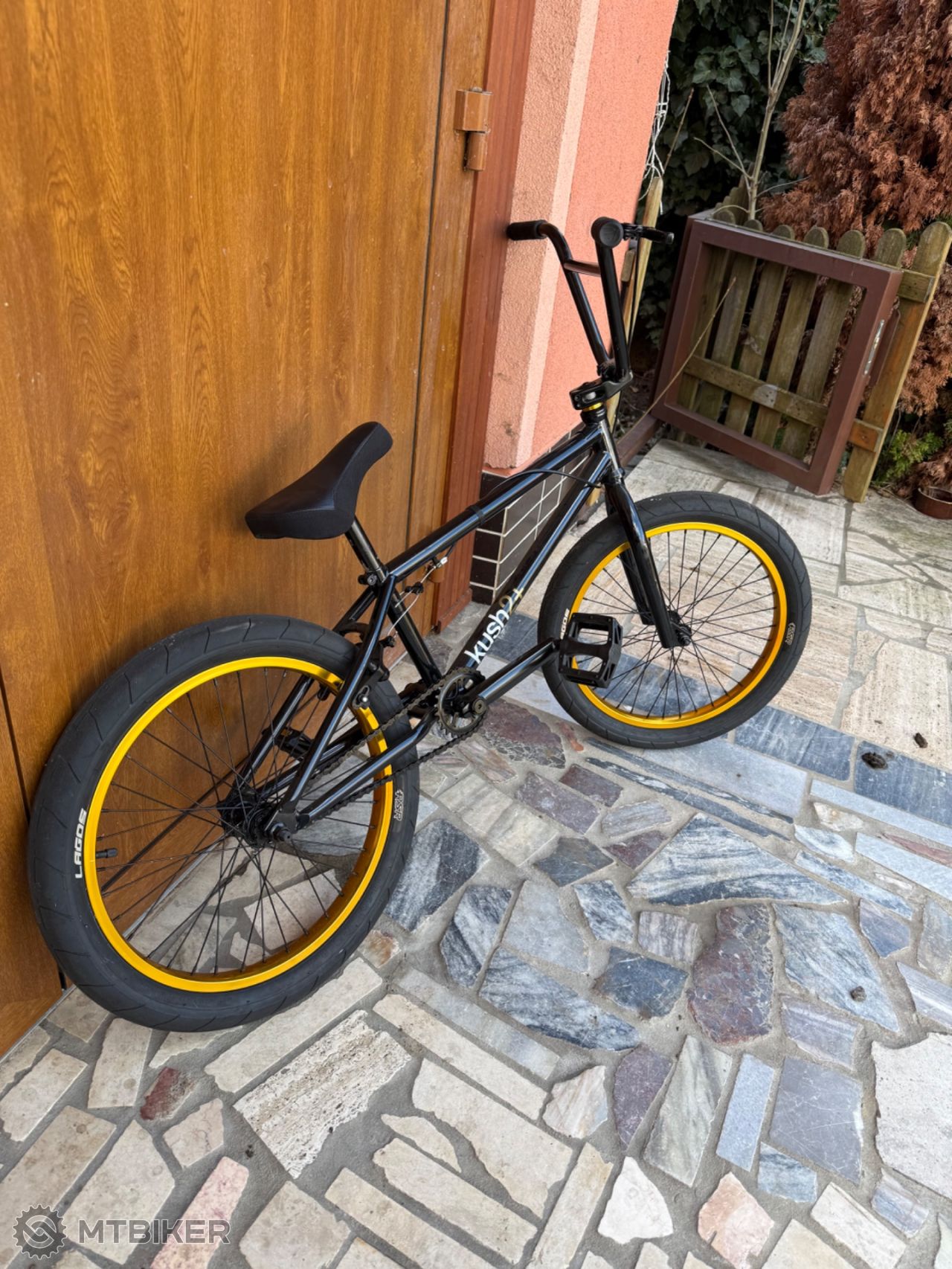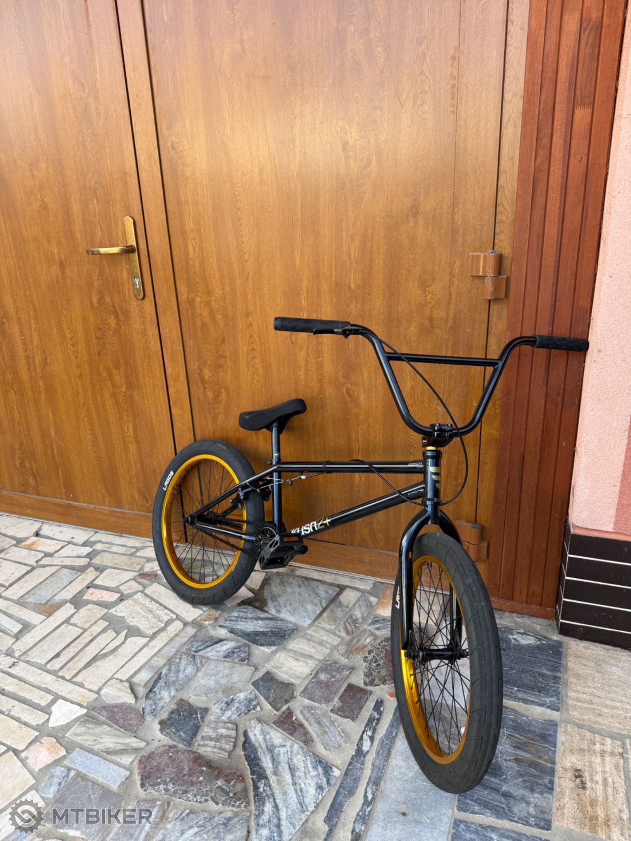 Bmxa ma pekne čierne telo a zlate kolesa