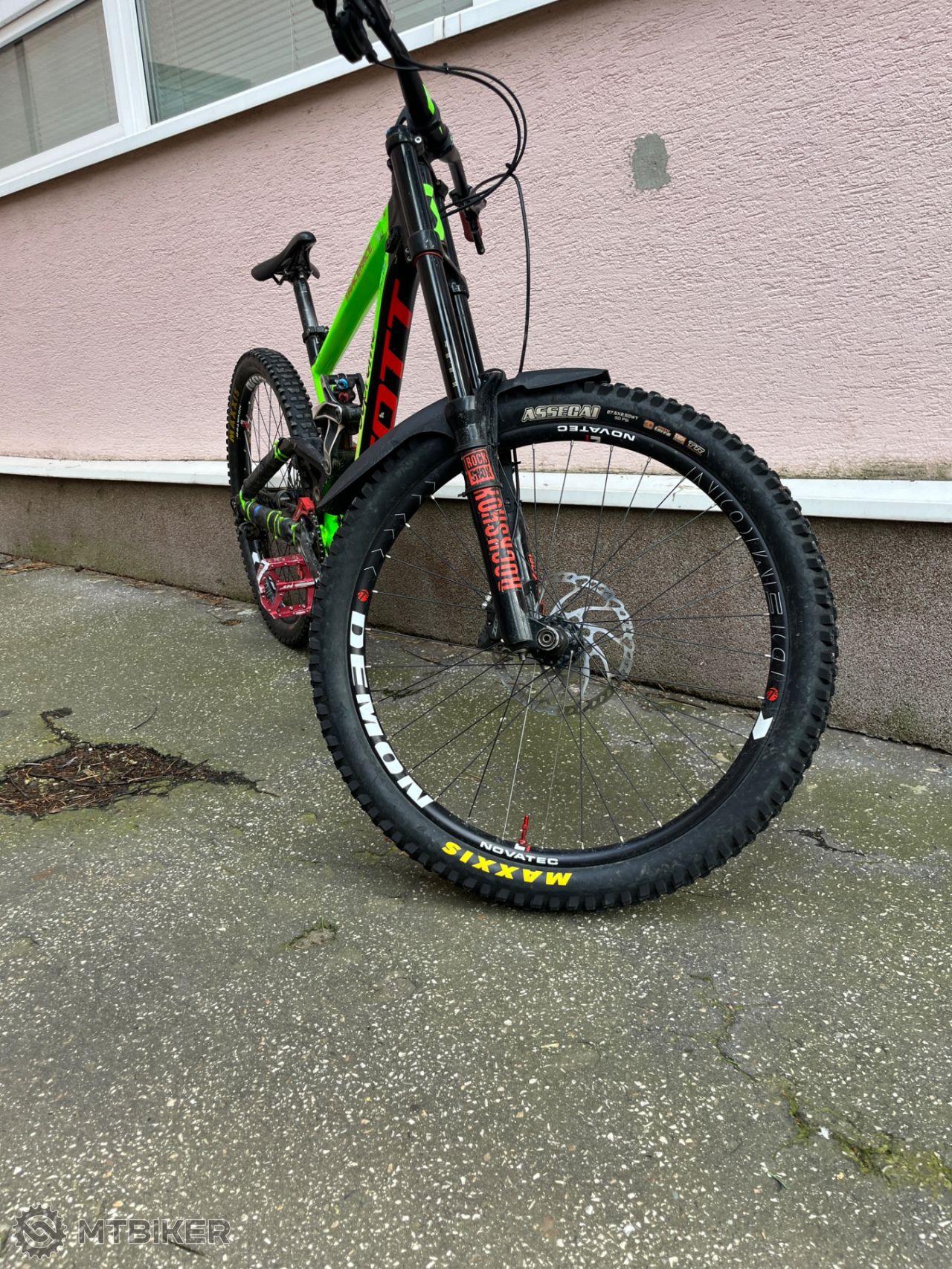 Plášte: Predný- Maxxis Assegai 2,5 27,5 3C, Tr, Exo+ maxx terra Zadný: Maxxis dhr II 3C, DD, maxx grip, tr