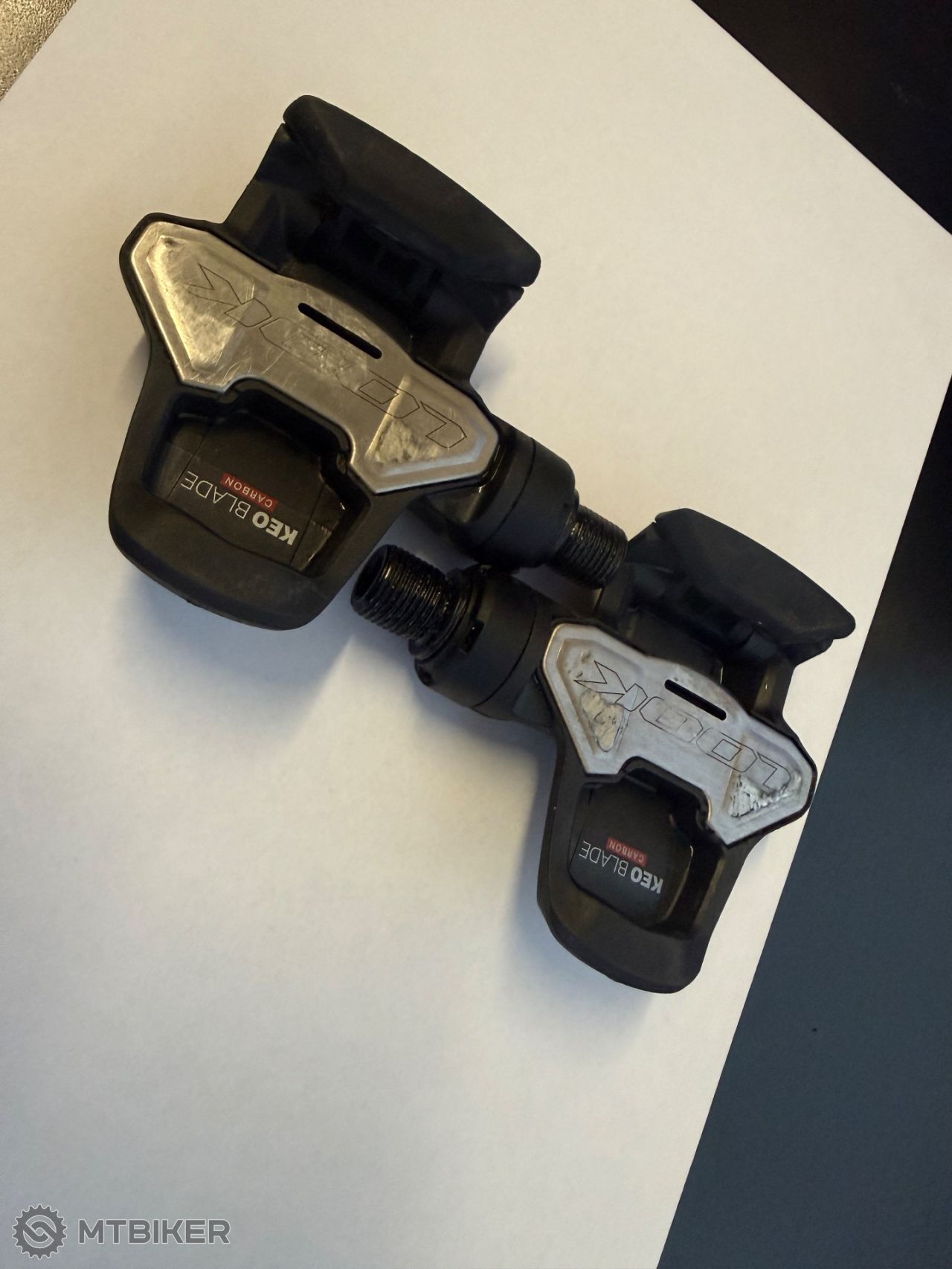 Predám špičkové karbónové pedále LOOK Kéo Blade Carbon vo verzii s titánovou osou. Upozornenie k stavu: Na jednom pedáli chýba vrchný nerezový pliešok (nášľapná plocha). Pedál je stále funkčný, ale pre dlhodobé používanie odporúčam buď opravu (nalepenie nového pliešku), alebo využitie pedálov na náhradné diely (najmä cenné titánové osi a nepoškodené karbónové telá/ložiská).