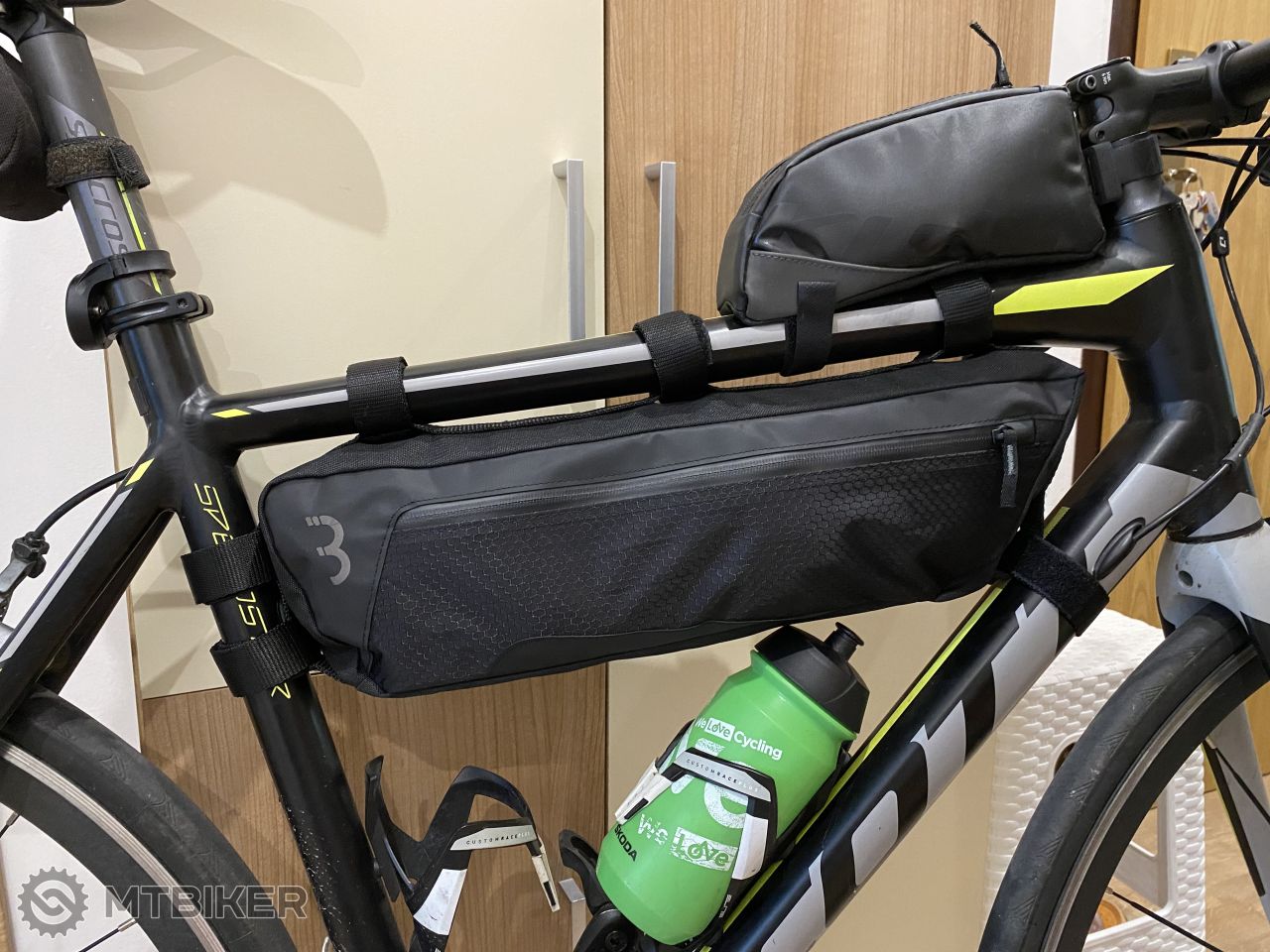 Vyborna taska, pasuje aj do mtb (velk.ramu 19) aj do cestneho biku. Dobre drzi tvar.